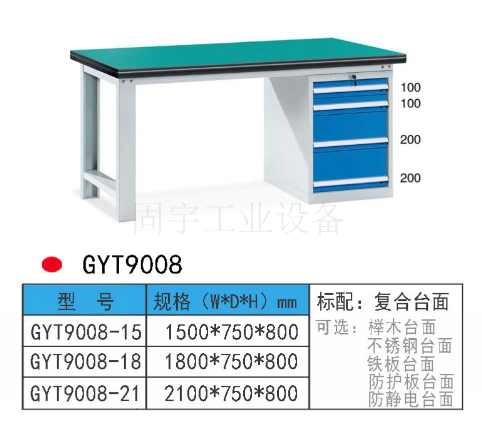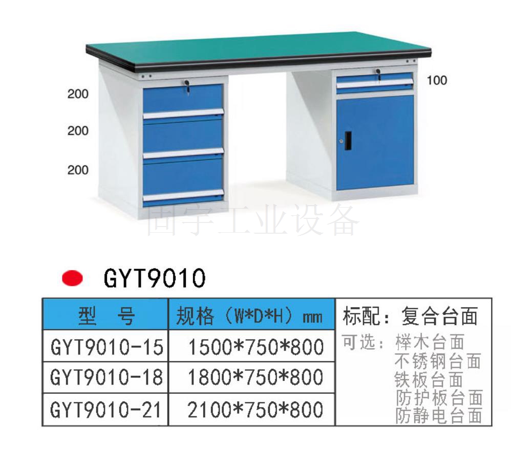 工作臺(tái)采用優(yōu)質(zhì)冷扎板精工制作而成,堅(jiān)固的工作桌框架,牢固平穩(wěn),可使工作桌承重1000kg;多種工作桌面選擇,可配合不同使用的要求;工具吊柜(箱),側(cè)柜(箱)燈架,調(diào)節(jié)腳杯,,外形美觀;層板,抽屜質(zhì)量上乘,承重大,抽屜內(nèi)可根據(jù)需要任意分隔;節(jié)約空間,適用性強(qiáng)。 范圍 工作臺(tái)適合于模具、鉗工、檢測(cè)、維修、組裝等各種不同應(yīng)用場(chǎng)合,具有良好的耐腐蝕性,耐臟性,抗沖擊性和承重能力強(qiáng)。桌面經(jīng)特殊處理,具有防腐、抗沖擊力強(qiáng)等特點(diǎn),多種桌面的選擇,可配合不同的使用要求;所配置的抽屜、柜門方便使用者存儲(chǔ)工具;桌角上預(yù)留電源孔,方便安裝電源插座。工作臺(tái)(桌)分為輕型(可承重300公斤),中型和重型工作臺(tái)(桌)可承重1000公斤及特制的工作臺(tái)。可根據(jù)需要靈活地配置各種吊柜、單柜、雙柜等,可加裝掛板,電器板,燈頂板、調(diào)節(jié)腳杯,輪子,擱板等桌上部件,具有多種選擇,能夠滿足各種工位的需求。 工作臺(tái)材質(zhì)采用優(yōu)質(zhì)冷軋鋼板,表面采用靜電噴涂處理而制成,堅(jiān)固的工作桌框架,牢固平穩(wěn),可使工作桌臺(tái)面均勻承重達(dá)到1000kg。桌面有多種材質(zhì)組成,適用于各行業(yè)辦公場(chǎng)所。可配合工具柜,吊柜,掛板,單開門柜使用。抽屜、承辦承重大,性能好,抽屜里可根據(jù)需求配置分隔條 工作臺(tái)分類:根據(jù)臺(tái)面的不同分為:櫸木工作臺(tái)、鋼板合成工作臺(tái)、防靜電工作臺(tái)、高分子工作臺(tái);根據(jù)承重的不同分為:輕型工作臺(tái)、中型工作臺(tái)、承重型工作臺(tái);根據(jù)功能的不同分為:多功能工作臺(tái)、帶吊柜工作臺(tái)等等。 臺(tái)面優(yōu)勢(shì) 復(fù)合臺(tái)面特性臺(tái)面平整度高,撓曲度為0.8mm。表面2mm厚度為高分子材料,使臺(tái)面耐酸堿、耐磨、耐油。臺(tái)面采用高壓纖維板,使臺(tái)面更具有抗沖擊性。特別的圓弧桌角,不易受撞擊損壞。高強(qiáng)度塑膠包邊堅(jiān)固、實(shí)用、不易損壞、不易脫落。櫸木桌面特性桌板使用櫸木與防水膠經(jīng)加壓制造而成。表面光滑平整,美觀不易變型,耐油、耐熱、耐酸、耐堿,適合一般工廠作業(yè)與精密模具維修,儀器置放與檢測(cè)等用途。不銹鋼包面特性桌板使用高壓合成板,表面包1-2mm砂面不銹鋼板,以達(dá)美觀耐用。耐高溫、耐磨損、耐油、使用壽命長,為多功能桌板,適合一般工廠、食品業(yè)、研究室、電子廠無塵室使用。輕型工作臺(tái)可承重300kg-500KG防火板臺(tái)面特性輕巧、美觀、耐磨、防火。層壓板臺(tái)面特性工作桌面平整,變型小,強(qiáng)度高,抗沖擊性好。 標(biāo)準(zhǔn)顏色 產(chǎn)品顏色 標(biāo)準(zhǔn)的顏色可分為6種:淺藍(lán)色(RAL5015), 電腦灰(RAL7035), 機(jī)床綠(RAL6011),深藍(lán)色(RAL5017)。
